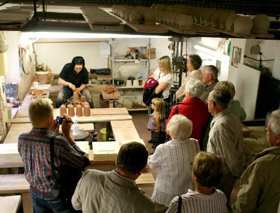- Melden sich zur Führung an. In circa 30 Minuten werden Sie durch die Töpferei geführt und bekommen Infos zur Geschichte und zum Produktionsablauf. Die Führung kostet pro Person 3 Euro, mindestens aber 24 Euro.